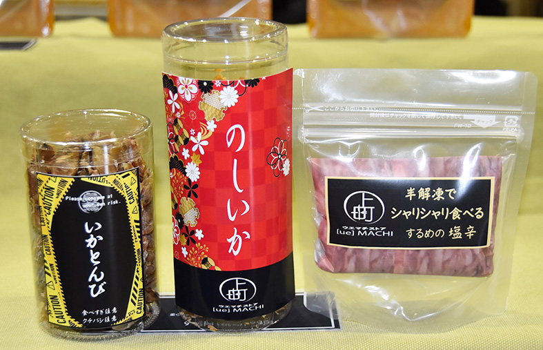 福島町の有限会社ヤマキュウ西川水産(湯浅哲社長、電話0139・47・2139)は、イカのとんび(口ばし)を有効活用した商品などの展開で、新ブランド「ウエマチストア」を立ち上げた。商品形態、パッケージなどターゲットに応じて新機軸を創出。訴求力を高めて販売拡大に取り組んでいる。本体のヤマキュウ西川水産はスルメなど乾物卸に特化。「ウエマチストア」は冷凍食品・加工品などを展開していく。「上町」は地元で昔から呼ばれている会社所在地の集落名で「小さい町の小さい集落から新しいものを発信していくという意味を込めた」と湯浅社長。また、今後、水産以外の素材を使った商品開発も計画しており「ストア」と名付けた。