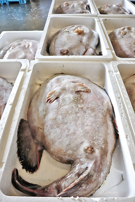 出荷されたアンコウ(12月1日、余市郡漁協市場)