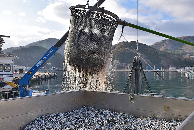 宮城県女川魚市場の大型定置網で、1月に入りカタクチイワシの水揚げが増えている。28日時点の月間水揚量は前年同月比67%増の282トン、金額が8.6倍の約2990万円。市場関係者によると常磐海域での数量が少なく加工筋からの引き合いが増加、「本来50~20円程度だった単価が、このところ上昇している」(買受人)と言い、平均単価は5.3倍の105円と高値を付けている。