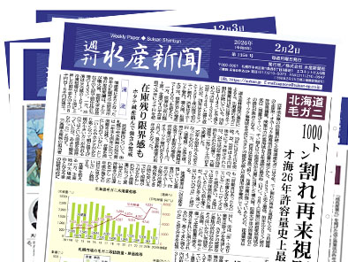 近年低水準の供給量が続く北海道産毛ガニは今年、千トン割れの再来も視野に入る。3月開幕の主産地・オホーツク海海域が資源量の減少から、453トンと史上最低、前年比302トン減の許容漁獲量。操業中の日高海域も3年連続の最低枠(19トン)、2月1日再開の釧路東部海域が低位(残量19.7トン)。千トン超えは小型個体が大量に出現した噴火湾、胆振太平洋の両海域などの漁況が焦点となる。一方、消流は相場高で鈍く、冷凍在庫が残っているものの、流通業者はオホーツク海海域を主体にホタテの減産も絡んだ高値形成を警戒している。