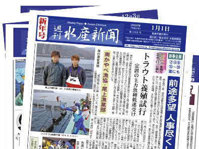 南かやべ漁協木直地区で定置漁業を営む有限会社ヤマダイ尾上漁業部(尾上大輔代表)は秋サケやスルメイカといった主力魚種の水揚げ減少など海況の変化を受け、新たにトラウトサーモンの試験養殖に乗り出した。自社の定置漁場の一部を利用していけすを設置し、昨年11月に幼魚約4千尾を投入。定置の操業期間中は網起こしなど各作業と並行して給餌・管理。今夏の水揚げを予定している。。